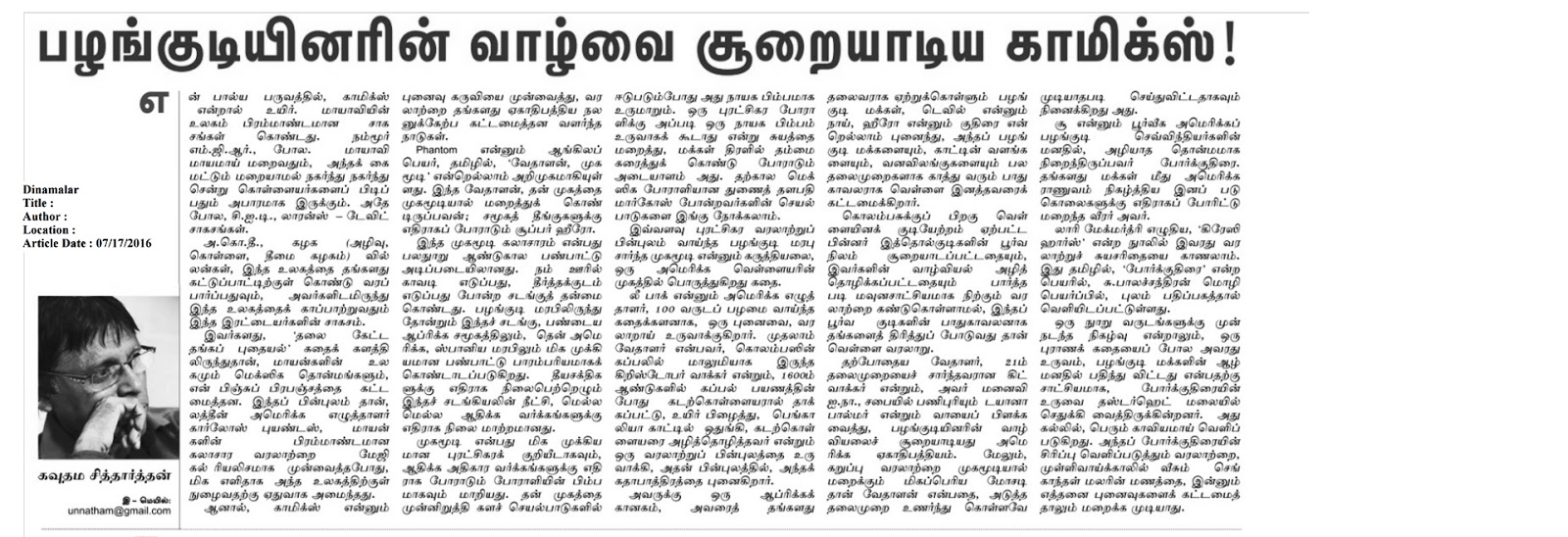 ReplyDelete//தினமலர் நாழிதளில் 17-7-2016 அன்று திரு Gouthama Siddarthan அவர்கள் காமிக்ஸ் பற்றி எழுதிருந்ததை சார்ந்து என் கருத்து..!