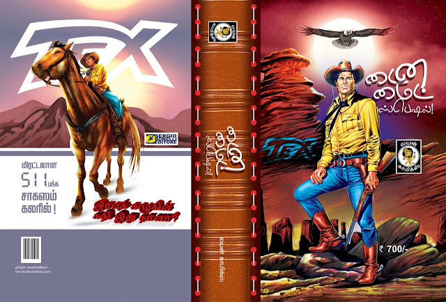 ஓராண்டு கழிந்த நிலையில் 2017-ன் மத்தியில் – நடப்பாண்டுக்கான அட்டவணைத் தயாரிப்புக்கான வேளை புலர்ந்திருக்கையில் – “TEX 70” காத்துள்ளது என்ற அறிவிப்பு மாதா கோவில் மணியோசையைப் போல நாலாதிக்குகளிலிருந்தும் வந்து சேர்ந்திருந்தது ! So ஒரு அதிரடி ஸ்பெஷல் இதழ் வெளியிட வேண்டி வருமென்ற போதே என் டயரிக் குறிப்புகளைத் தான் புரட்டத் தோன்றியது ! 511 பக்க மெ-காாாாா சாகஸம் என் தலைக்குள் ஜிங்கு ஜிங்கென்று ஆடித் தீர்க்க – அதை வெளியிட “டைனமைட்” ஒரு சூப்பரான களமாகிடக்கூடும் என்ற எண்ணம் வலுவாகத் தொடங்கியது ! அது மட்டுமன்றி – இத்தனை பெரிய கதையை ”முழு வண்ணத்தில்” எனத் திட்டமிட்டால், அது இன்னமும் தெறிக்கச் செய்யுமே என்ற வேகமும் சேர்ந்து கொண்டது ! தொடர்ந்த நாட்களில் நெட்டில் இந்த நெடுங்கதை சார்ந்த விமர்சனங்கள்-அலசல்கள் என்று தேடத் துவங்கினேன் ! இத்தாலிய ரசிகர்கள் ஒட்டு மொத்தமாய் 'ஆஹா...ஓஹோ.." என்று சிலாகித்திருப்பதே சகல இடங்களிலும் கண்ணில் பட்டது ! அப்புறமென்ன ? விக்கிரமாதித்த மன்னரின் தாத்தாவே வந்தாலும் தலைக்குள் குடிகொண்டுவிட்டிருந்த வேதாளத்தை இறக்கிட முடியாதென்ற அளவுக்கு இந்தக் கதையோடு ஒன்றிப் போய் விட்டது மனசு !